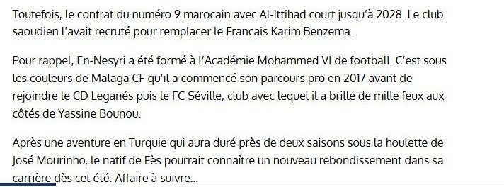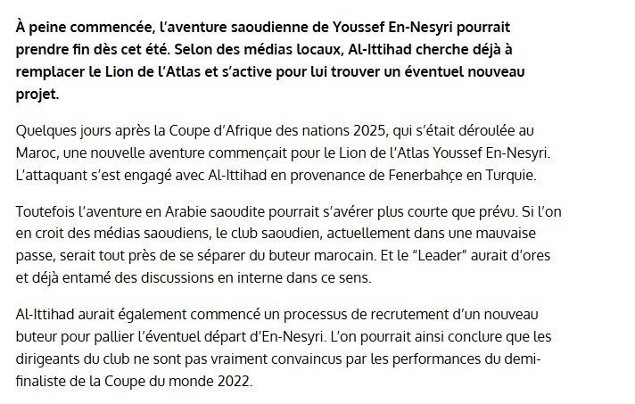 H24’te yer alan habere göre Al-Ittihad, Faslı golcünün yerine şimdiden alternatif arayışına girdi ve oyuncuya yeni bir takım bulmak için harekete geçti.