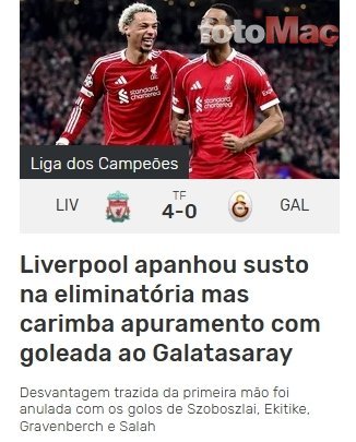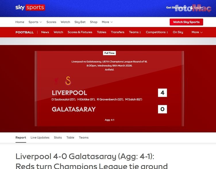 Sky Sports | Liverpool, Anfield’da Galatasaray’ı çok rahat geçti.
