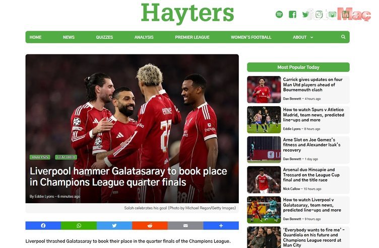Hayters | Liverpool, Galatasaray’ı dağıttı ve Şampiyonlar Ligi’nde çeyrek finale uzandı.