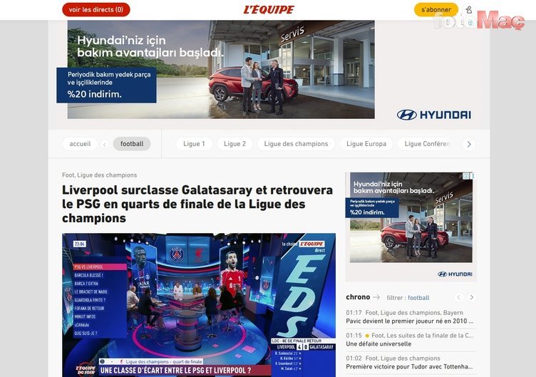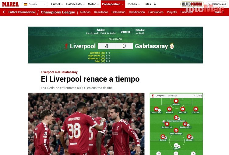 L’Equipe | Liverpool, Galatasaray’ı açık ara geride bıraktı ve Şampiyonlar Ligi çeyrek finalinde PSG’nin rakibi oldu.