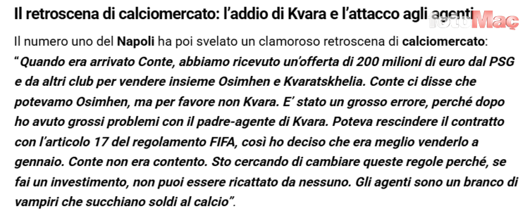 Conte, “Osimhen’i satabilirsiniz, ama lütfen Kvara’yı satmayın” dedi. Bu büyük bir hataydı çünkü sonrasında babası ve menajeriyle ciddi sorunlar yaşadım.