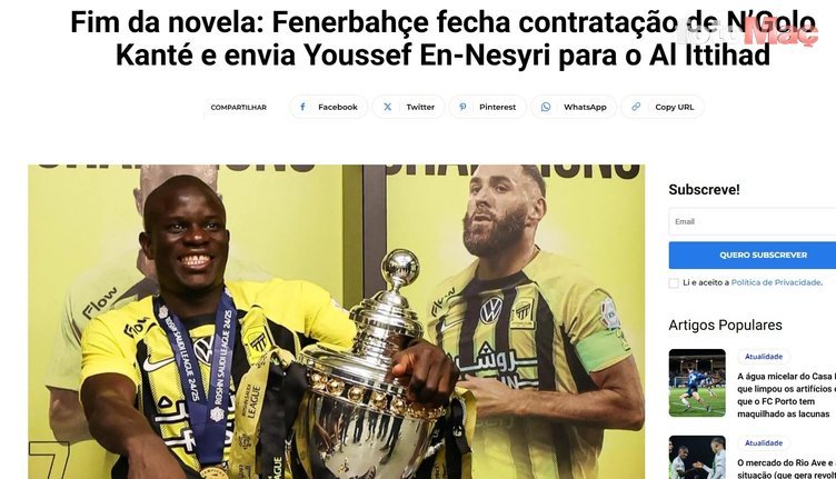 BOLA NA REDE: Transfer serüveni sona erdi: Fenerbahçe, N’Golo Kanté’nin transferini tamamladı ve Youssef En-Nesyri’yi Al Ittihad’a gönderdi
