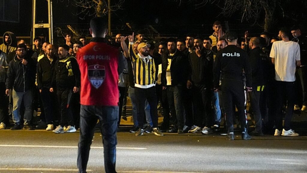Trendyol Süper Lig’in 31. haftasında Galatasaray’a 3-0 mağlup olan Fenerbahçe’de yaklaşık 150 taraftar, derbinin sona ermesinin ardından Samandıra’daki Fenerbahçe Can Bartu Tesisleri’nin önünde sarı-lacivertli futbolcular ile teknik ekibin bulunduğu takım otobüsünü bekledi.