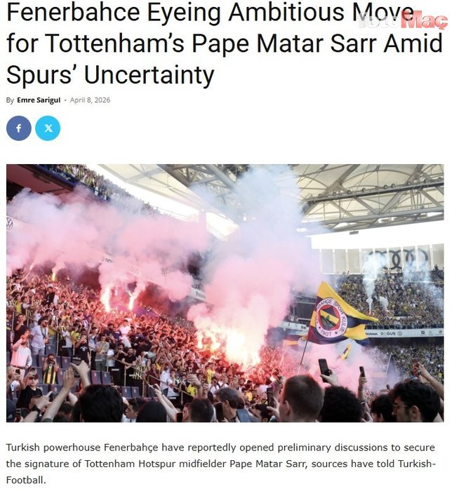 Turkish-Football kaynaklı haberde; sarı-lacivertliler, Tottenham forması giyen Pape Matar Sarr için görüşmelere başladı.