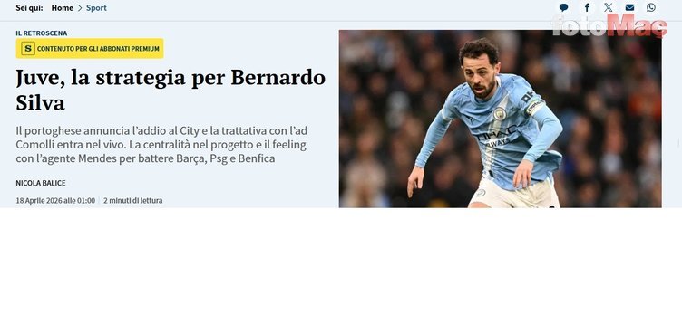 İtalyan basınından La Stampa’da yer alan habere göre; Juventus, Bernardo Silva transferi için harekete geçti.