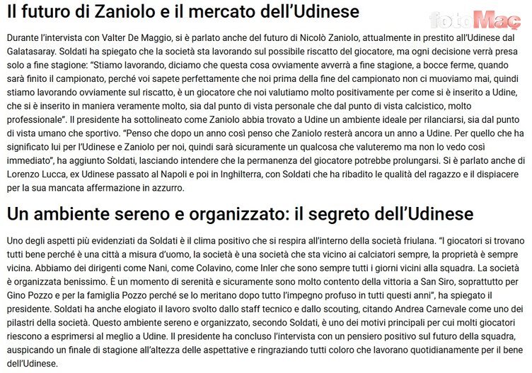 Böyle bir yılın ardından bence Nicolo Zaniolo bir yıl daha Udinese’de kalacaktır. Udinese için ne ifade ettiyse, bizim için de aynı şekilde önemli. Bu konu değerlendirilecek ama hemen sonuçlanacak bir durum değil.” ifadelerini kullandı.