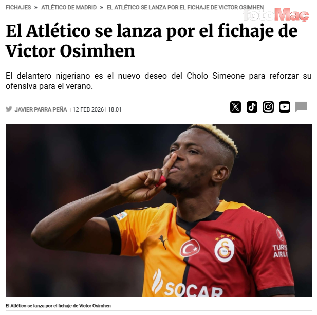 Bu senaryonun gerçekleşmesi için ilk adım ise Osimhen transferinin netleşmesi. Madrid ekibi, La Liga ve Şampiyonlar Ligi hedefleri doğrultusunda gol yollarında daha agresif ve dikine oynayan bir yapı kurmak isterken, Simeone’nin Osimhen’i sezon öncesi kampına yetiştirmek istediği belirtiliyor.