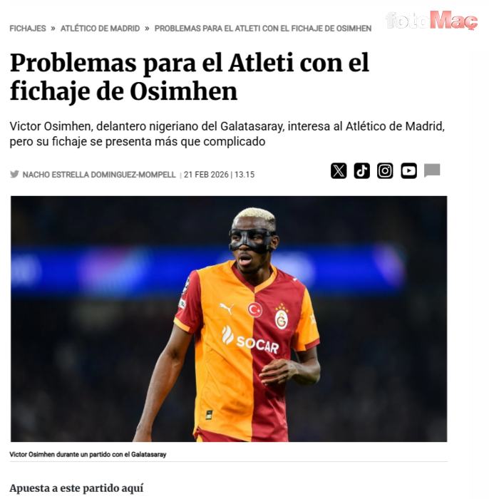 Ancak transferin önündeki asıl engelin sportif değil ekonomik olduğu vurgulanıyor. Osimhen’in yıllık yaklaşık 14 milyon euroyu bulan maaşı, Atletico’nun mevcut ücret politikasının üzerinde yer alıyor. Kulüp yönetimi, maaş dengesini bozacak bir sözleşmeye sıcak bakmıyor.
