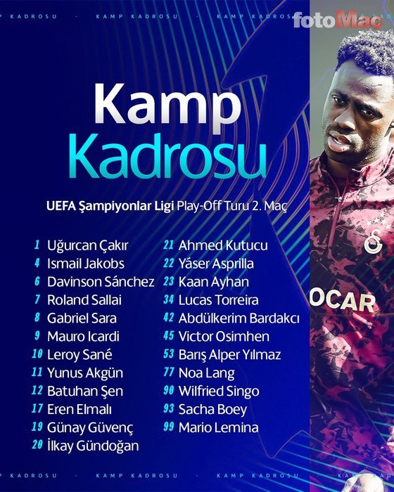 İŞTE, GALATASARAY KAMP KADROSU