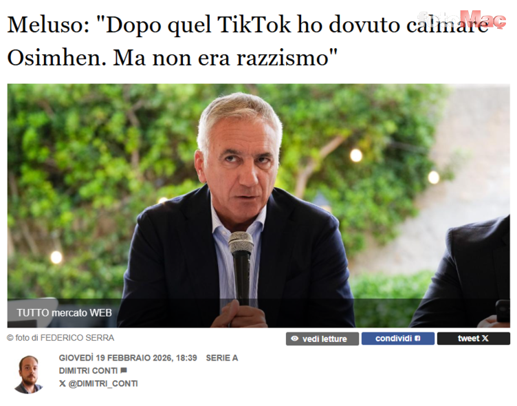 TikTok videosu olayına gelince, Napoli iletişim sorumlusu Nicola Lombardo ile birlikte Osimhen’i sakinleştirdik, video çıktıktan sonraki gün çok öfkeliydi. Irkçılıkla suçlandık ama hiçbir şey yoktu, sadece biraz ironi yapmak istenmişti.
