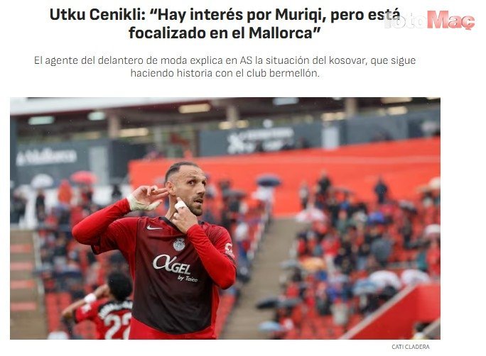 AS’a konuşan Cenikli, “Valencia maçındaydım. Muriqi’yi görmeye gittim. Daha önce de ziyaret etmiştim. Olası bir transferle ilgili somut bir gelişme yok. Vedat kendini kanıtlamış bir oyuncu ve Mallorca’da çok seviliyor. Kulübüne sadık ve kalan maçları başarıyla tamamlamak istiyor. Ona ilgi var; harika bir sezon geçiriyor, ancak şu anda tamamen Mallorca’ya odaklanmış durumda.” ifadelerini kullandı.